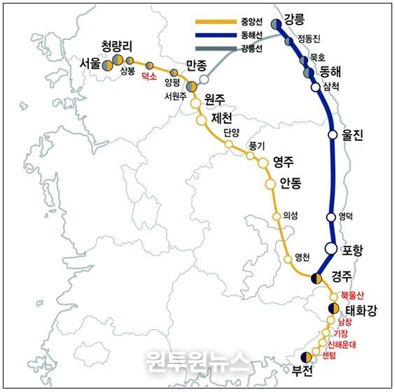 지난 1월 개통 이후 현재 아이티엑스(ITX)-마음이 운행 중인 동해선(부전~강릉) 구간에도 케이티엑스(KTX)-이음이 하루 6회(상·하 3회) 신규 투입된다.