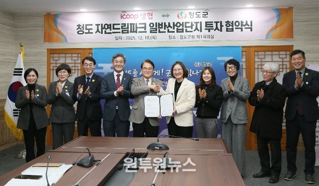 (원투원뉴스) 청도군은 지난 12월 18일 아이쿱소비자생활협동조합연합회와 '청도 자연드림파크 일반산업단지' 조성 및 투자 활성화를 위한 투자협약을 체결했다고 밝혔다.