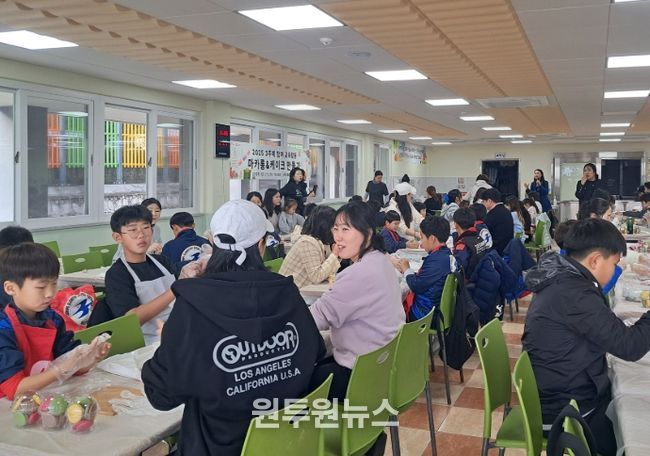 (원투원뉴스) 제주도교육청 서귀포초등학교는 17일 학교 급식실에서 학생과 보호자, 교사가 함께 참여하는 ‘마카롱과 케이크 만들기 프로그램’을 운영했다.