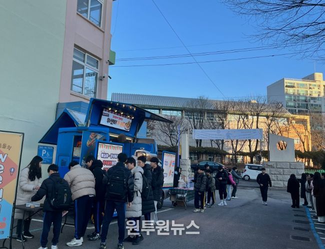 현장에서는 학생들에게 핫도그 간식을 제공하며 격려하고, ‘올 한 해 나에게 듣고 싶은 말은?’을 주제로 한 참여 공간을 운영해 학생들이 스스로를 돌아보는 시간을 가졌다.