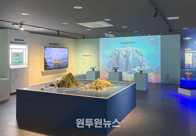 특히 ‘상호작용형 체험벽’은 화면을 터치하면 독도의 자연환경과 해양 생물들이 반응하며 움직이는 방식으로 관람객이 직접 탐색하듯 독도의 생태를 알아볼 수 있도록 구성됐다.