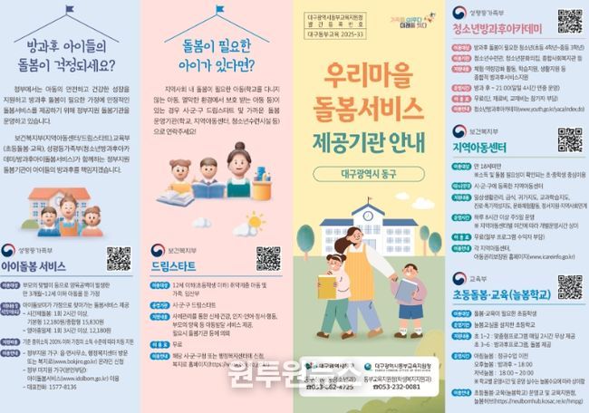 (원투원뉴스) 대구동부교육지원청은 학교와 지역사회 간 돌봄서비스 정보 공유를 강화하기 위해 ‘2026년 늘봄 안내지도(리플릿)’를 제작하여 관할 학교에 배포했다고 19일(금) 밝혔다.