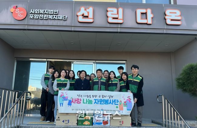 (원투원뉴스) 포항교육지원청 중등교육과 소속 직원은 2025. 12. 18. 포항시 흥해읍 칠포로에 위치한 아동일시보호시설 선린다온에서 사랑 나눔 봉사활동을 실시했다.