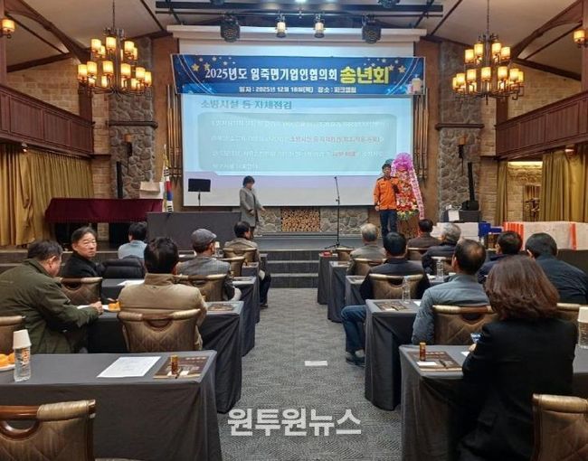 (원투원뉴스) 일죽면기업인협의회는 지난 18일 일죽면 소재 파크엘림에서 회원사 및 일죽면 기관·단체장이 참석한 가운데 “2025년도 일죽면기업인 협의회 송년회”를 열어 한해를 돌아보고 회원사 간 친목을 다지는 뜻깊은 시간을 가졌다.