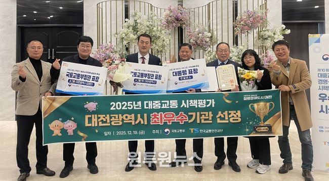 (원투원뉴스) 대전시는 국토교통부 주관 2025년 대중교통 시책평가에서 최우수기관으로 선정돼 19일 장관 표창을 수상했다.