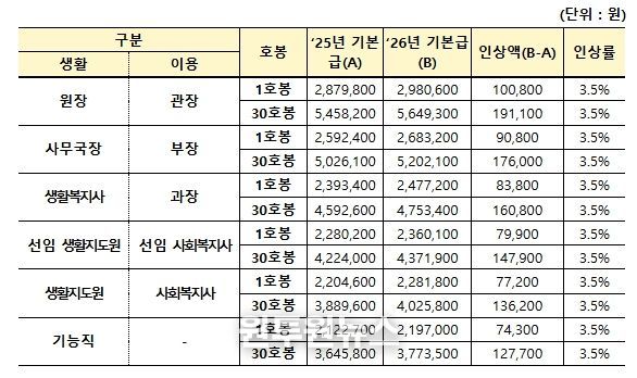 이는 예년의 1%p 안팎이던 상승분을 약 2배가량 높인 수치로, 사회복지시설 종사자 처우개선에 대한 정부의 의지가 반영된 결과이다. 처우개선 실현을 위해 '26년 10종 국고지원시설 예산은 전년보다 7.6% 인상된 9,812억원이 편성됐다.