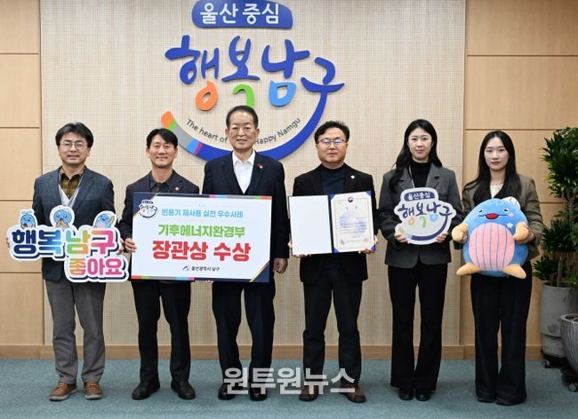 (원투원뉴스) 울산 남구는 기후에너지환경부가 주최하고 자원순환보증금관리센터(이사장 박용규)가 주관한 '2025년 빈용기 재사용 실천 우수사례' 공모에서 ‘최우수상(기후에너지환경부 장관상)’을 수상했다고 19일 밝혔다.