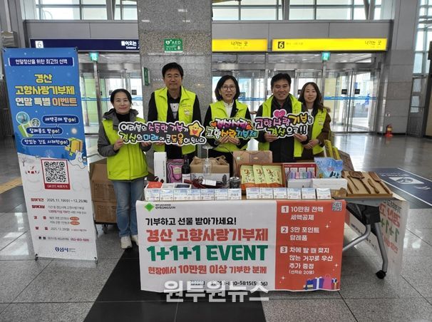 (원투원뉴스) 경산시는 19일 동대구역에서 승객들을 대상으로 고향사랑기부제 홍보물을 배부하고, 기부 답례품을 전시하는 등 연말 홍보활동을 전개했다.