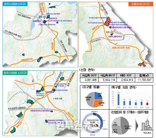 다만 춘천·원주·강릉 개별 도시 단위로는 여전히 지정 요건 충족에 한계가 있었던 만큼 도는 중앙정부와의 협의 과정을 통해 3대 도시의 연구·산업 역량을 하나로 결집하는 연합형 연구개발특구 모델을 제안했으며 그 결과 이번 신규 지정에 이르게 됐다.