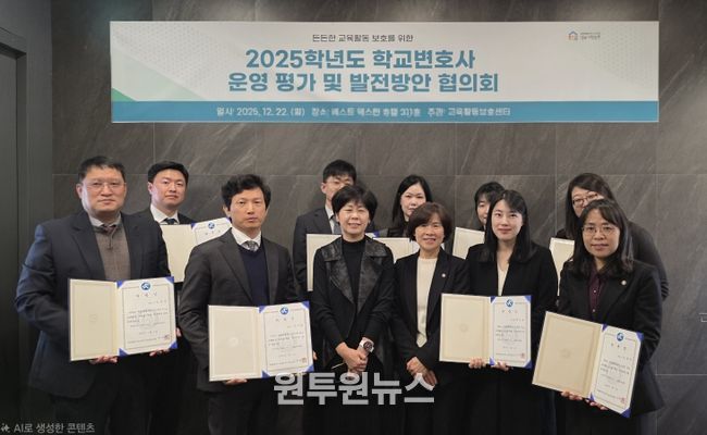 (원투원뉴스) 세종특별자치시교육청 학교지원본부는 2025학년도 교육활동 보호를 위한 학교변호사 운영 성과를 점검하고, 2026학년도 발전 방안을 모색하기 위해 22일 ‘2025학년도 학교변호사 운영 평가 및 발전방안 협의회’ 를 성공적으로 개최했다고 밝혔다.