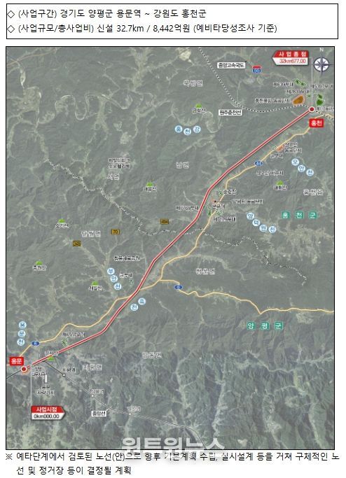 (원투원뉴스) 국토교통부는 12월 22일 열린 재정사업평가위원회(기획재정부 주관)에서 용문~홍천 광역철도 건설사업이 예타를 통과하고, 증평-호법 등 2개 고속도로 확장사업이 예타 대상 사업에 선정됐다고 밝혔다.