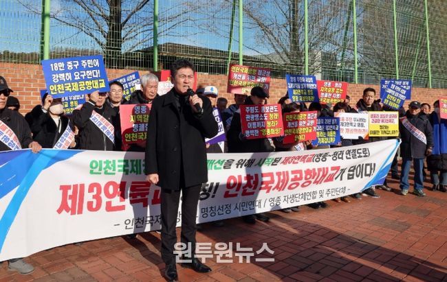 이와 관련해 인천국제공항대교 명칭 선정 시민연대 100여 명은 이날 국토지리정보원에서 집회를 열고, ‘인천국제공항대교’ 명칭 제정을 한목소리로 촉구했다.