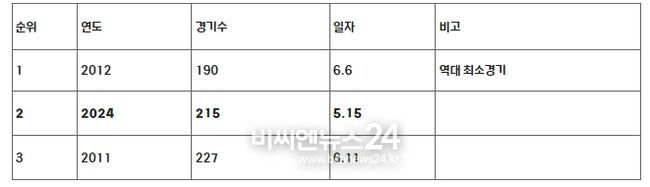 15일 215경기 만에 300만 관중을 돌파한다면 2024 시즌 전체 경기를 약 30% 진행한 상황에서 300만 관중을 돌파하게 된다.