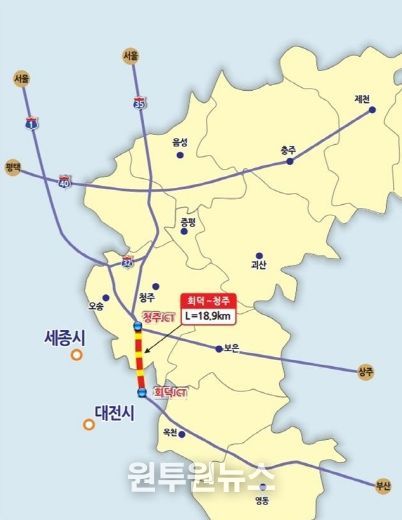이재덕 충북도 도로과장은 “증평~호법, 회덕~청주 고속도로 확장사업이 예비타당성조사 대상사업으로 신규 선정된 것은 사업추진 당위성과 도민들의 염원이 반영될 결과”라며 “본격적인 사업추진을 위해서 예비타당성조사가 통과될 수 있도록 적극 노력하겠다.”고 밝혔다.