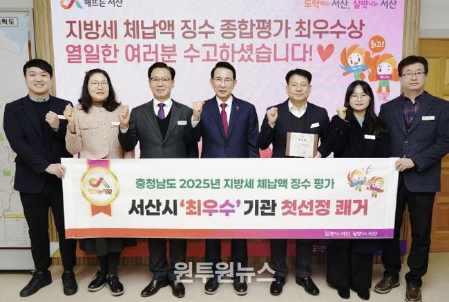 (원투원뉴스) 충남 서산시는 충청남도가 실시한 ‘2025년 지방세 체납액 징수 종합평가’에서 최우수기관으로 선정됐다고 밝혔다.