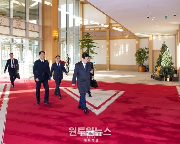 (원투원뉴스) 이재명 대통령이 26일 청와대 복귀를 앞두고 용산 대통령실로 마지막 출근을 하고 있다.