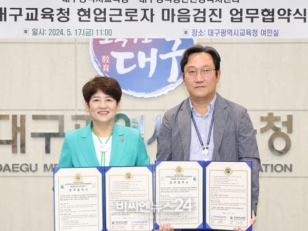 (비씨엔뉴스24) 대구시교육청은 5월 17일 11시 시교육청 여민실에서 대구광역정신건강복지센터와 학교(기관) 현업근로자의 직무스트레스 및 정신건강 관리 체계 구축을 위한 업무협약을 시도교육청 최초로 체결한다고 밝혔다.