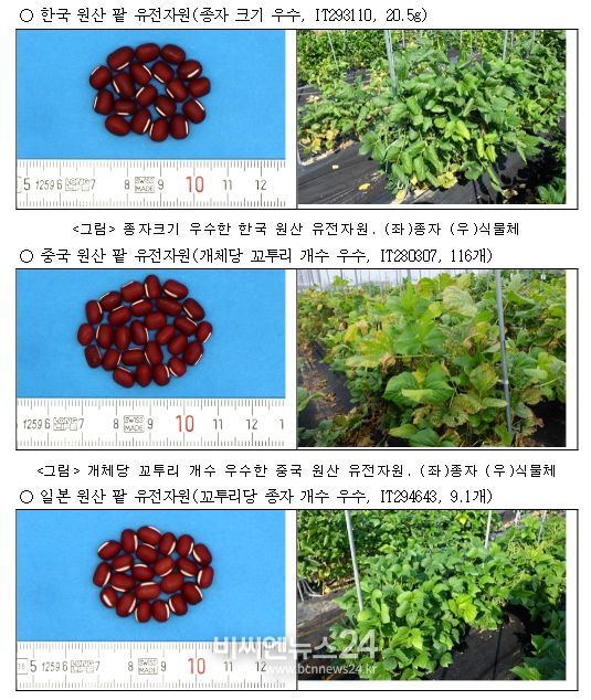 또한, 유전정보를 비교했을 때 우리 원산 팥은 종자 크기, 중국은 개체당 꼬투리 수, 일본은 꼬투리당 종자 수와 관련한 유전적 다양성이 다른 나라에 비해 현저히 낮았다. 이를 통해 예부터 그 나라에서 선호하던 농업 형질에 따라 반복적인 개체 선발이 이뤄져 해당 유전형질이 고정됐음을 추측할 수 있었다.