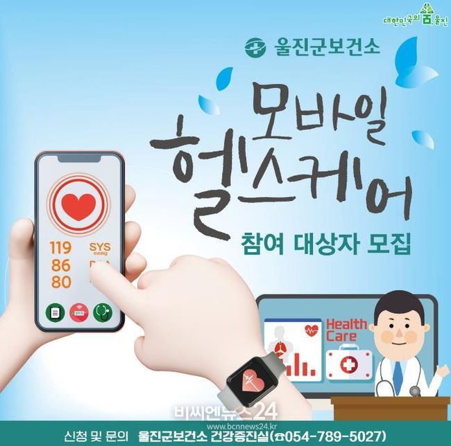 (비씨엔뉴스24) 울진군은 지역주민의 자가 건강관리 능력 향상을 위해 맞춤형 건강관리 서비스인‘2024년 모바일 헬스케어 사업’참여자 100명을 5월 31일까지 모집한다.