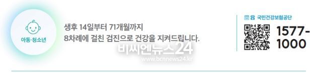 (비씨엔뉴스24) 생후 14일부터 71개월까지 8차례에 걸친 검진으로 건강을 지켜드립니다.
