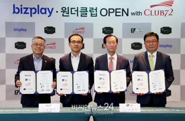 (비씨엔뉴스24) ㈜한국프로골프투어(대표이사 김원섭, 이하 KPGT)가 27일 경기 성남 소재 KPGA 빌딩에서 KPGA 투어 ‘비즈플레이-원더클럽 오픈 with 클럽72’ 대회 개최 조인식을 가졌다.
