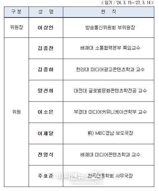 (비씨엔뉴스24) 방송통신위원회는 3월 15일 제6기 지역방송발전위원회 위원을 위촉했다.