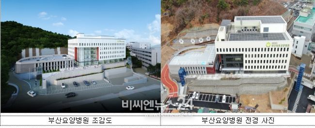 총사업비 452억 원이 투입된 부산요양병원은 지하 1층, 지상 5층 규모에 180병상(6인실)을 갖추고 있으며, 병상 사이 공간을 1.5미터 이상 확보하여 환자가 보다 쾌적한 환경에서 입원과 요양 치료를 받을 수 있다.