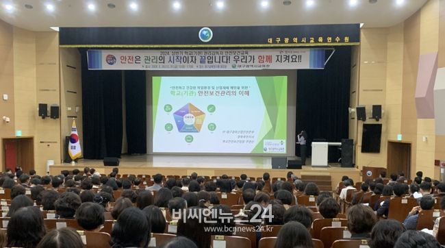 (비씨엔뉴스24) 대구시교육청은 5월 29일, 31일 대구교육연수원 대강당에서 안전한 근무환경 조성과 산업재해 예방을 위해 관내 공ㆍ사립 학교장, 교육(지원)청, 직속기관의 관리감독자 500여 명을 대상으로 안전보건교육을 실시한다.
