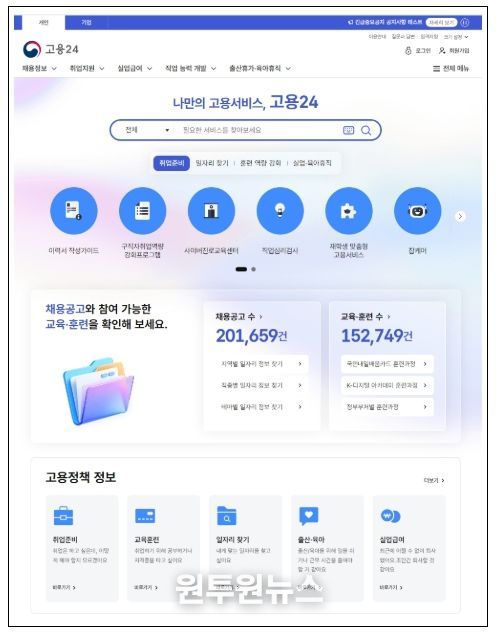 (원투원뉴스) 고용노동부와 한국고용정보원(원장 이창수)은 고용서비스 통합플랫폼 ‘고용24’ 개통 1주년을 맞아, 국민과 기업이 더 쉽고 편리하게 쓸 수 있도록 8월 20일 화면을 전면 개편했다.
