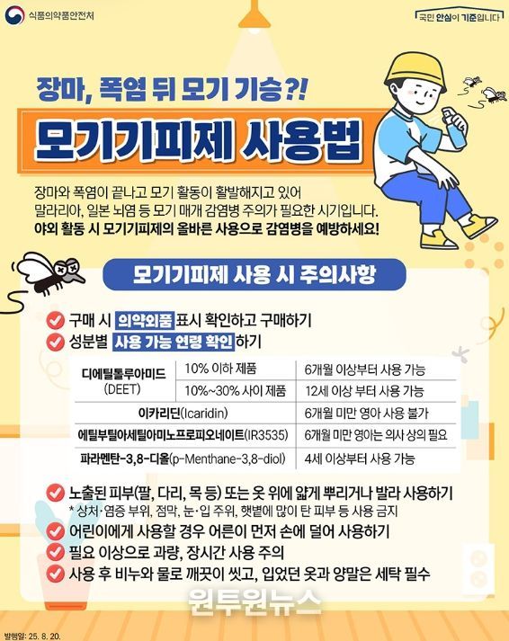 야외 활동 시 모기기피제의 올바른 사용으로 감염병을 예방하세요!