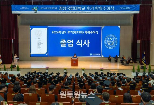 (원투원뉴스) 경상국립대학교는 2024학년도(제75회) 후기 학위수여식을 8월 25일 오전 10시 가좌캠퍼스 GNU컨벤션센터 대강당에서 개최했다.