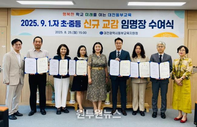 (원투원뉴스) 대전동·서부교육지원청은 8월 25일 2025. 9. 1.자 인사발령에 따른 유·초·중등 신규 교(원)감 임명장 및 인사발령통지서 수여식을 실시했다.