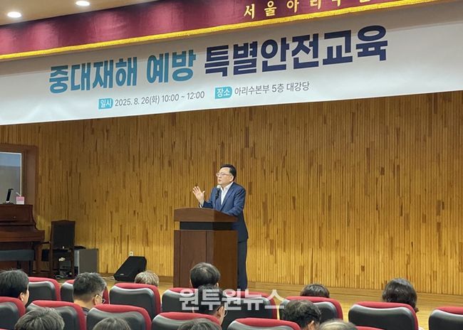 (원투원뉴스) 김성보 서울시 행정2부시장은 8월 26일 오전 10시 서울아리수본부 대강당에서 열린 ‘중대재해 예방 특별교육’에 참석했다. 이번 교육은 서울아리수본부 및 수도사업소 팀장급 이상 직원 120명을 대상으로 진행됐으며, 김 부시장이 직접 강연에 나섰다.