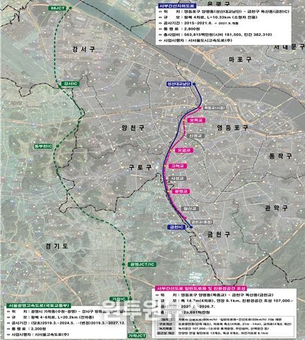 ‘서부간선도로 일반도로화 및 친환경공간 조성공사’는 서부간선 지하도로 및 광명-서울 고속도로와 연계하여 서부간선 상부도로의 구조·기능을 개편하기 위해 단절된 안양천과의 접근성 개선을 통해 수변 친화도시를 조성하고, 일반도로화로 차로폭 축소, 녹지공간 확보 등 친환경 주민 편의공간을 조성하는 것이 목적이다.