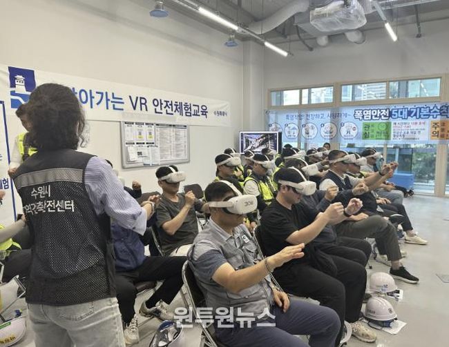 영통구 6개 건축공사장 관계자와 공무원 등 30여 명은 VR(가상현실) 콘텐츠를 활용해 추락, 충돌, 낙하물 등 실제 건설 현장에서 발생할 수 있는 사고 상황을 체험하고, 대응 방법을 배웠다. 가설공사 위험성 평가와 관리, 안전경영 관리 등 이론 교육도 함께 진행했다.