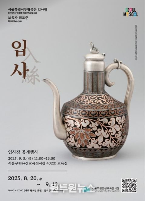(원투원뉴스) 서울시가 가을의 문턱인 9월, 도심 곳곳에서 서울 고유의 전통 문화를 직접 체험할 수 있는 무형유산 공개행사를 개최한다. 이번 행사는 정교한 금속공예 기술인 ‘입사장’(5일)부터 조선왕실의 ‘차(茶) 문화’(13일), 해학이 넘치는 우리 전통의 ‘소리’(13일), 그리고 고향에 대한 그리움을 담은 실향민들의 ‘귀향제’(20일)까지, 다양한 무형유산의 진면목을 보여주는 자리로 구성됐다.