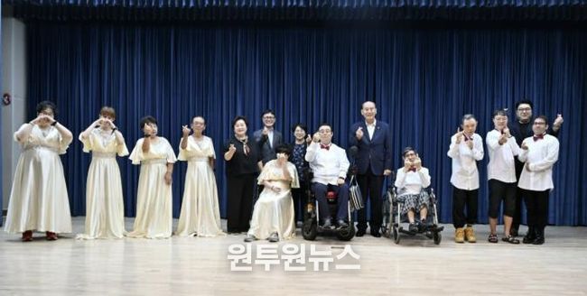 (원투원뉴스) 동두천 박형덕시장 내외는 오는 9월 5일 개최되는 『제26회 사회복지의 날』 기념식을 앞두고, 동두천시장애인종합복지관 합창단 ‘햇살콰이어’의 공연 연습 현장을 지난 3일 방문해 단원들을 격려했다.