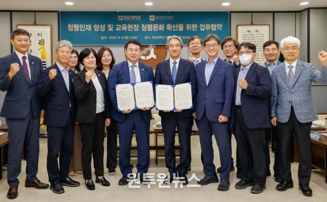 전남대 이근배 총장은 “대학이 가진 전문성과 교육청의 현장 경험이 만나 시너지 효과를 낼 것으로 기대한다”며 “지역사회 전반에 청렴 의식이 확산될 수 있도록 적극 협력하겠다”고 밝혔다.