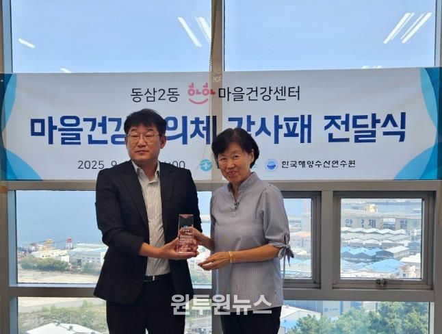 (원투원뉴스) 영도구보건소는 지난 9월 8일 지역주민의 건강증진 환경 조성을 위해 헌신적인 노력을 기울여 온 한국해양수산연수원에 감사패를 전달했다.
