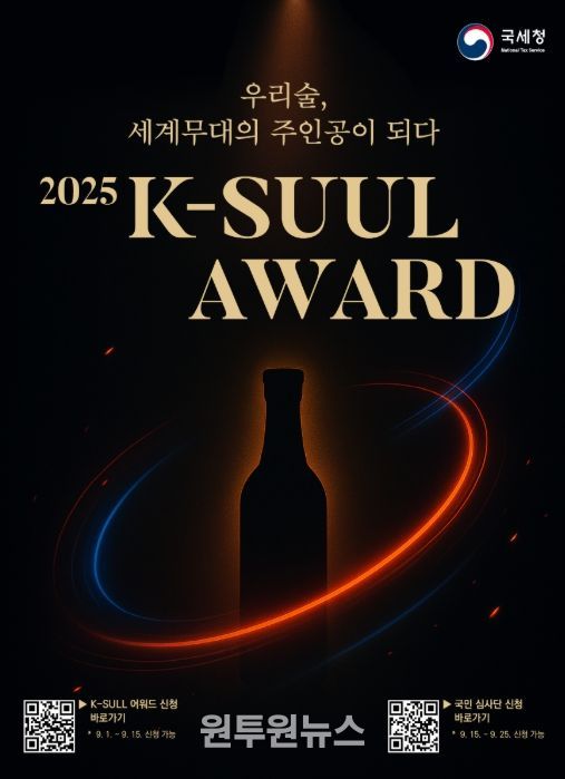 (원투원뉴스) 국세청은 세계적인 명품주로 성장할 수 있는 중소기업의 우수 주류를 발굴하여 해외시장 진출을 지원하기 위해, 국세청이 주관하는 '2025 K-SUUL AWARD'를 최초로 개최할 예정이다.