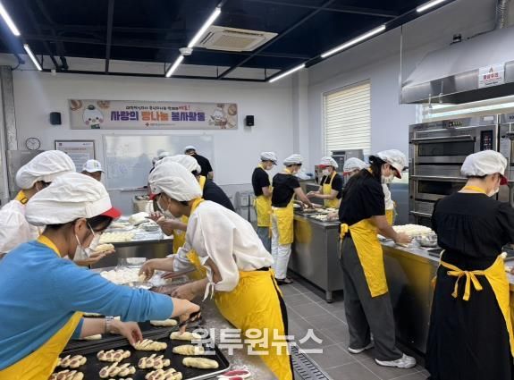 11일, 대한적십자사 충남지사의 도움으로 진행된 이번 제빵 봉사에는 충남교육청 직원 19명이 참한 가운데 진행됐다.