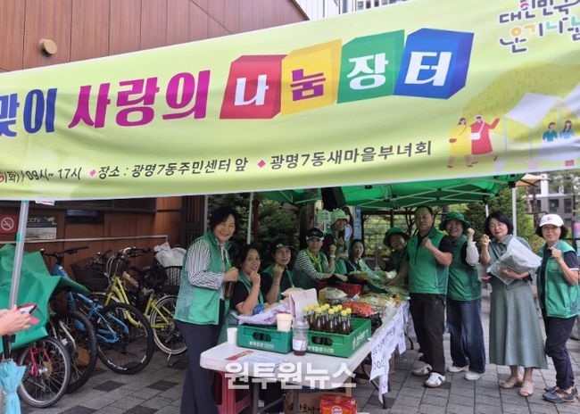 (원투원뉴스) 광명시 광명7동 새마을부녀회는 지난 16일 광명7동 행정복지센터 앞에서 추석맞이 사랑의 나눔장터를 열었다.