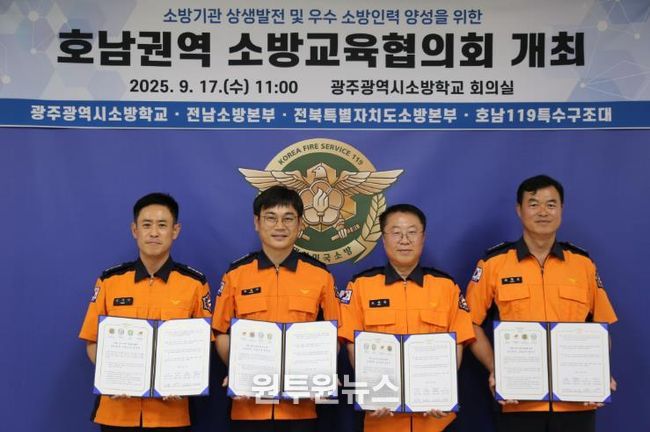(원투원뉴스) 광주광역시 소방학교는 17일 소방학교 회의실에서 전남소방본부, 전북특별자치도소방본부, 호남119특수구조대와 함께 ‘호남권역 소방교육협의회’를 구성·출범하고, 교육자원 공유 등 우수 소방인력 양성에 적극 협력하기로 했다.