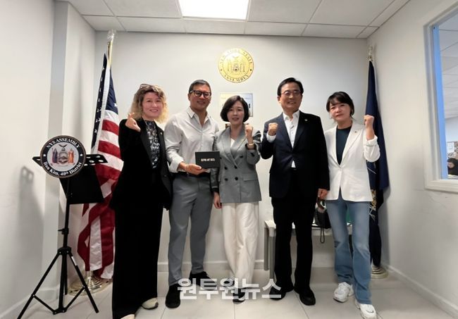 (원투원뉴스) 서울시의회 문화체육관광위원회(김경 위원장, 아이수루 부위원장, 김형재 위원, 김혜영 위원)는 현지 시각으로 16일 뉴욕 플러싱 지역구에 위치한 론 김 뉴욕주 하원의원 사무실을 방문해 간담회를 열고 주거, 교육, 문화, 도시 브랜딩, 다문화 사회 정책 등 다양한 의제를 놓고 심도 있는 논의를 진행했다.