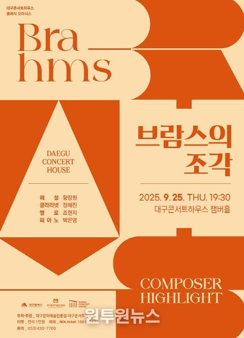 (원투원뉴스) 대구문화예술진흥원 대구콘서트하우스는 오는 9월 25일 오후 7시 30분, 대구콘서트하우스 챔버홀에서 클래식 작곡가의 삶과 작품을 집중 조명하는 렉처 콘서트 ‘컴포저 하이라이트’ 시리즈를 개최한다.