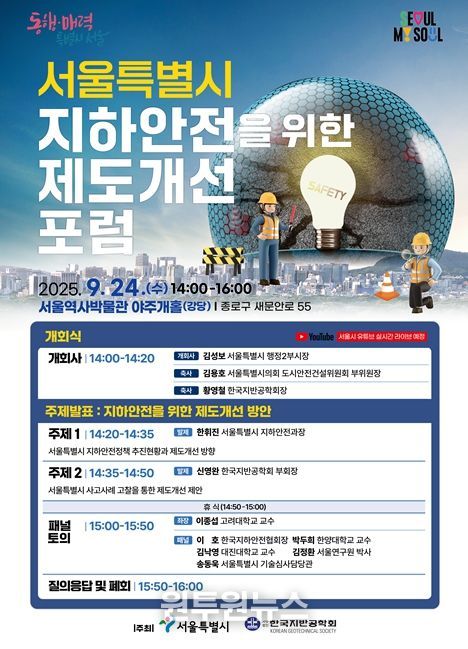 이번 포럼은 행사 당일 서울시 공식 유튜브 채널에 생중계되며, 지하안전 제도개선에 관심 있는 누구나 별도의 사전 등록 없이 현장 참석할 수 있다.
