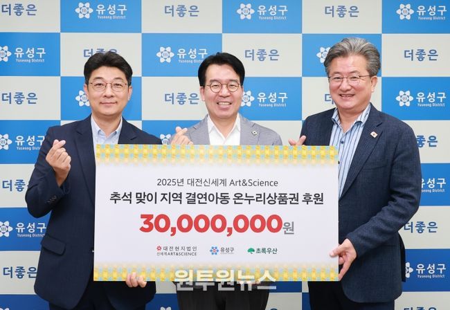 (원투원뉴스) 대전 유성구는 24일 대전신세계 Art&Science(대표이사 윤석희, 이하 대전신세계)가 온누리상품권 3,000만 원을 기탁했다고 밝혔다.