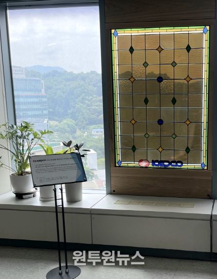 이번에 설치한 패널은 15×15cm2 크기의 페로브스카이트 모듈 54장을 병렬로 배열했으며, 모듈 효율은 11~13%, 투과율은 30% 이상으로 창을 통해 외부 전경을 볼 수 있는 등 기술 성능을 높였다. 또한 KEPCO 로고를 활용한 스테인드글라스 디자인을 패널 후면에 적용해 건축물 미관을 높이며 디자인 완성도를 확보했다.