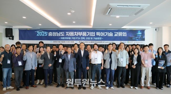 (원투원뉴스) (재)충남테크노파크 미래자동차센터는 지난 23일 충남TP 디스플레이혁신공정센터에서 ‘충청남도 자동차부품기업 특허기술 교류회’를 개최했다고 밝혔다.