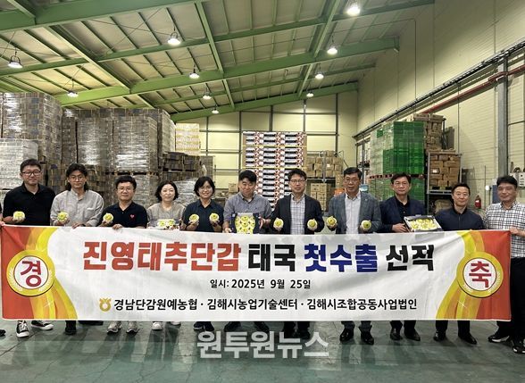 (원투원뉴스) 김해시는 25일 김해시 진영읍 본산리 경남단감원예농협 산지유통센터에서 농협, 시, 수출업체 관계자 등이 참석한 가운데 올해 진영에서 수확한 태추단감의 수출을 위한 선적을 했다고 밝혔다.